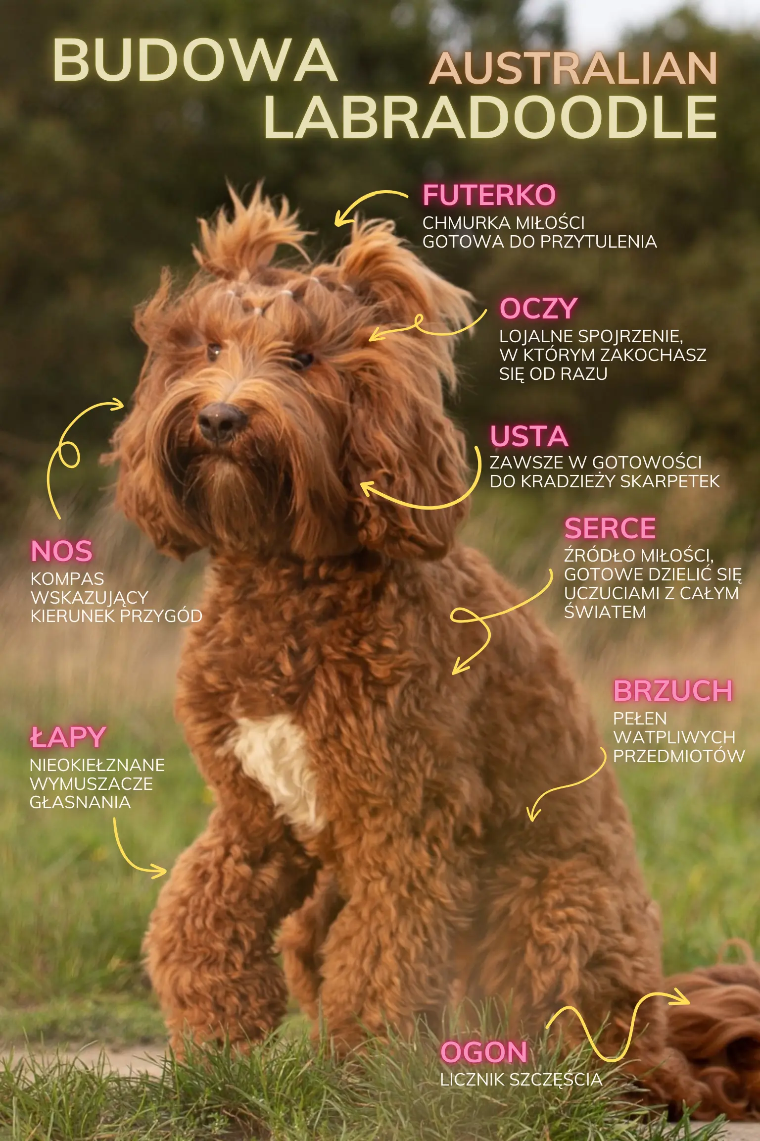 Wielopokoleniowy Australian Labradoodle to rasa psów, która została stworzona jako pies rodzinny, towarzyszący i terapeutyczny. Mimo że nazwa wskazuje na powiązanie z Labrador Retrieverem i Pudlem, w rzeczywistości to rasa o bardziej złożonym pochodzeniu, obejmującym także geny Cocker Spaniela Angielskiego oraz Amerykańskiego. Celem było uzyskanie najlepszych cech przodków.